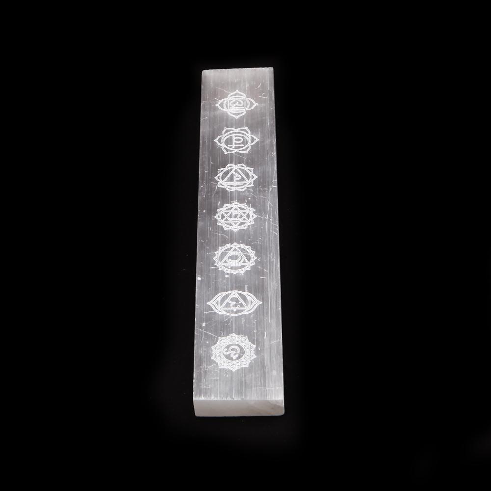Engraved Selenite Chakras Wand Polished Large Raw Wands