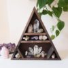 A beautifully handmade shelf which has cut out flower of life design and has been designed to store and display your crystals or keepsakes. Made from solid Pine and stained in a dark oak colour.