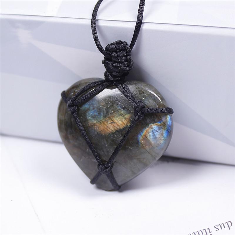 Rope Labradorite Heart Shaped Pendant For Decoration