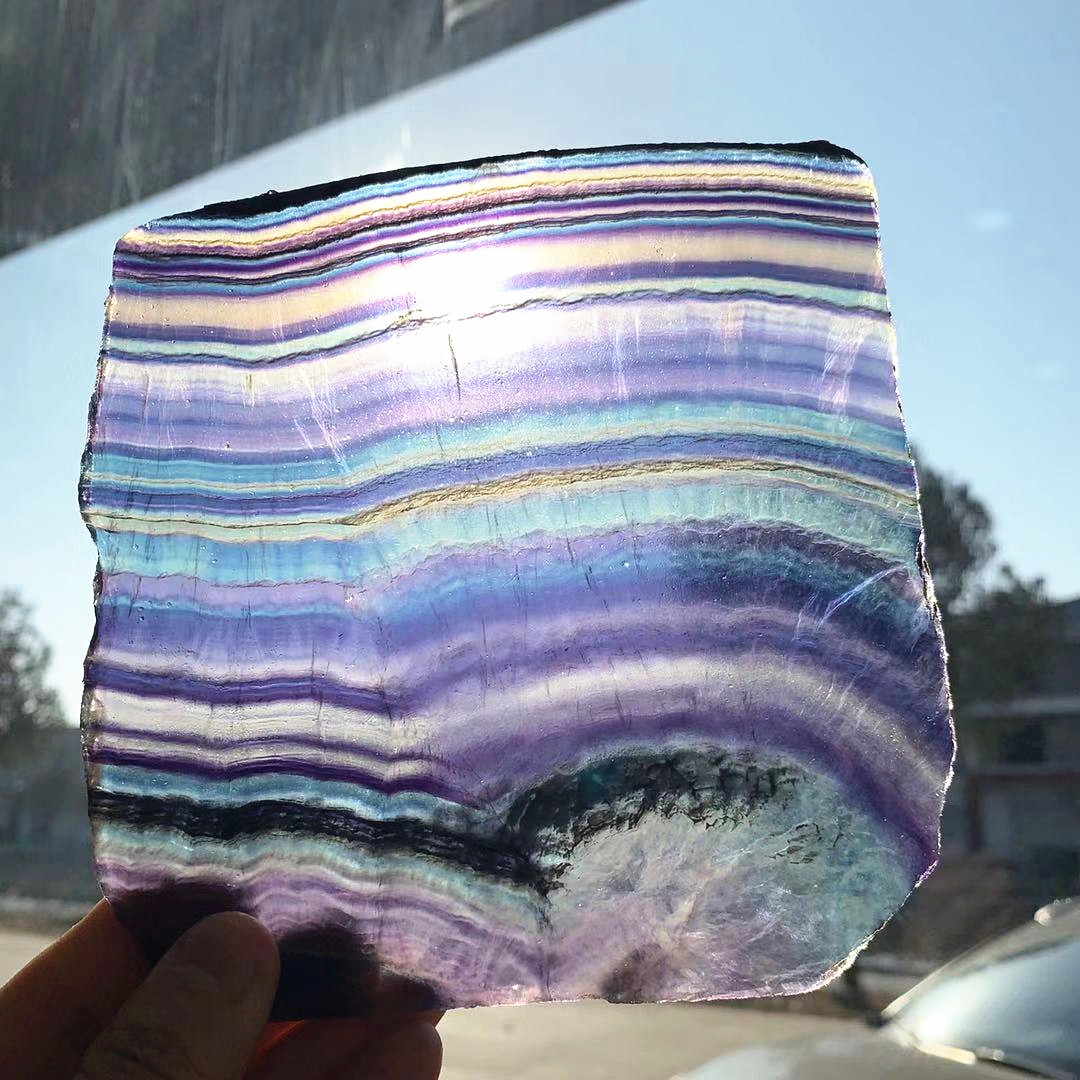 Wholesale Nature Quartz Crystal Stone Polished Colorful Rainbow Fluorite Crystals Slice For Decoration
